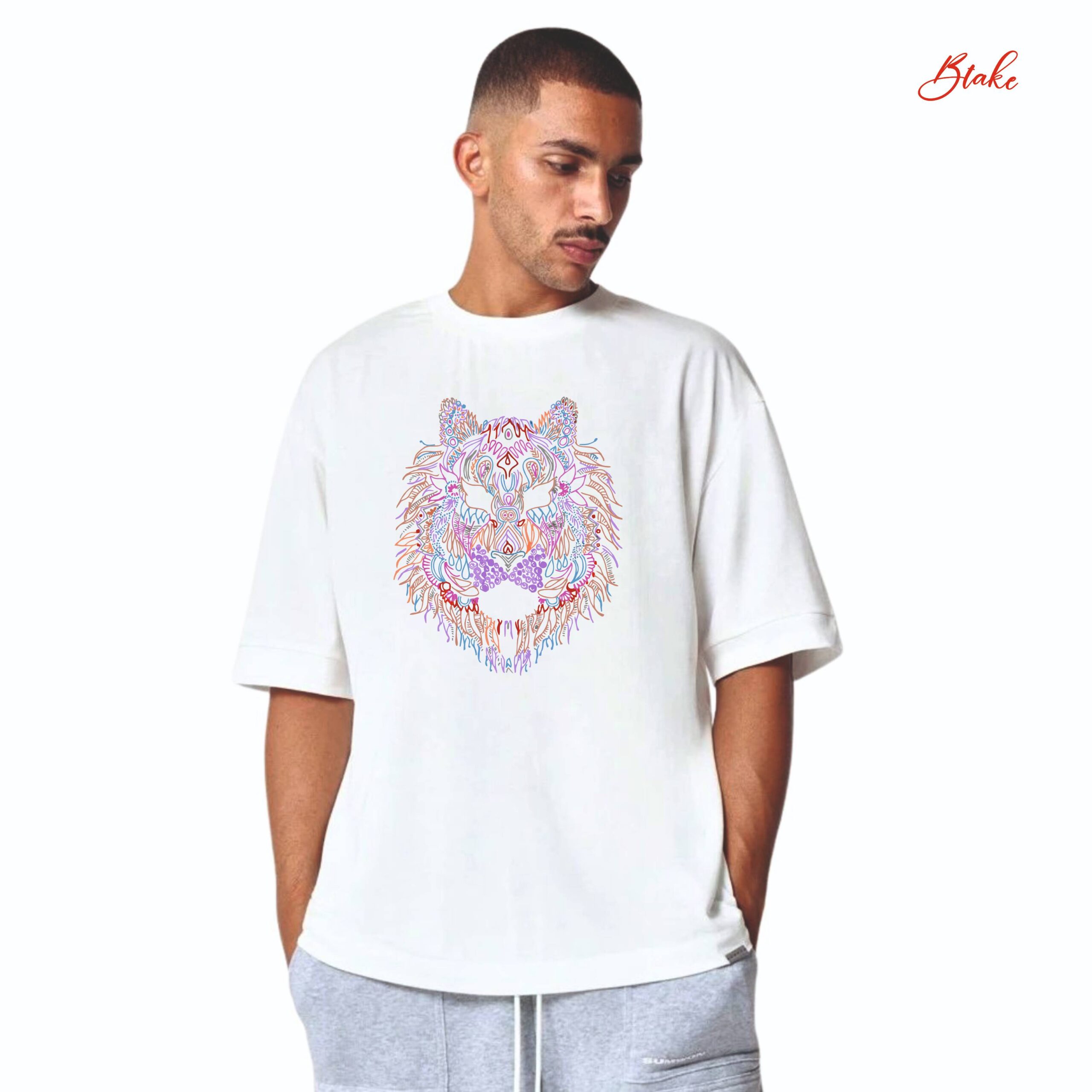 - Color: Black. This is an ideal choice, providing a dramatic and sophisticated backdrop that makes the “colorful” and intricate details of the mandala and lion pop with striking contrast. Black enhances the overall artistic impact and offers a versatile, classic foundation for casual wear.